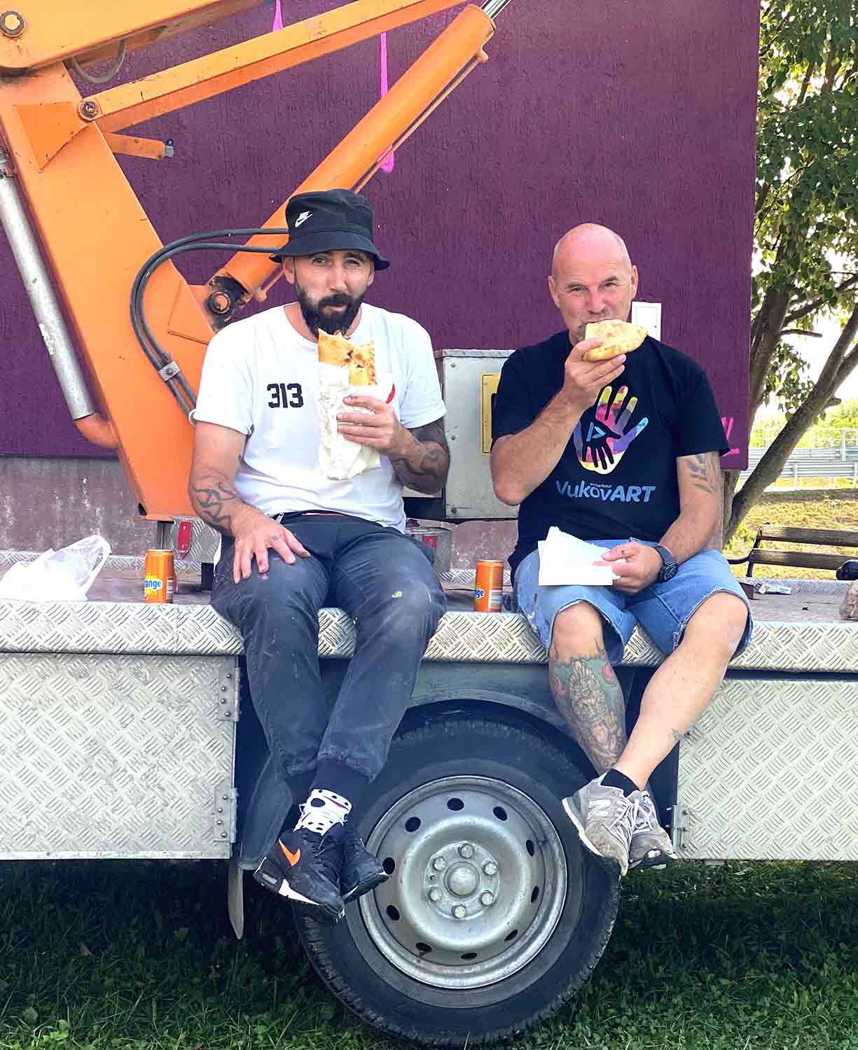 Das Team in Vukovar hat sich für uns wirklich super ins Zeug gelegt und alles war perfekt vorbereitet. Ausserdem waren zu diesm Zeitpunkt noch meine bulgarischen Freunde Arsek&Erase vor Ort, um ebenfalls eine Fassade zu gestalten. Somit war auf jeden Fall schonmal für gute Laune gesorgt, denn die beiden sind einfach unschlagbar sympathische Typen und darüber hinaus noch wirklich wahnsinnig talentierte Künstler.